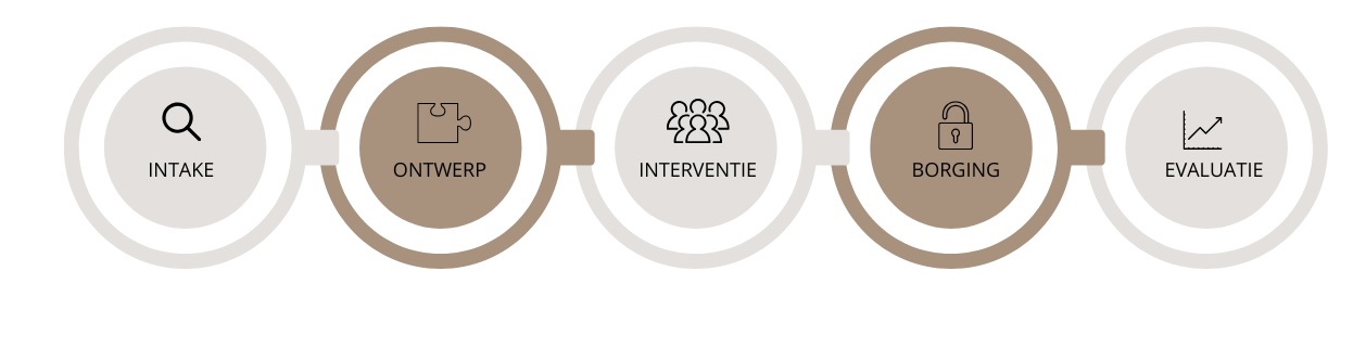 - We werken op de laag van gedrag, overtuigingen én systemen – want daar vindt echte verandering plaats